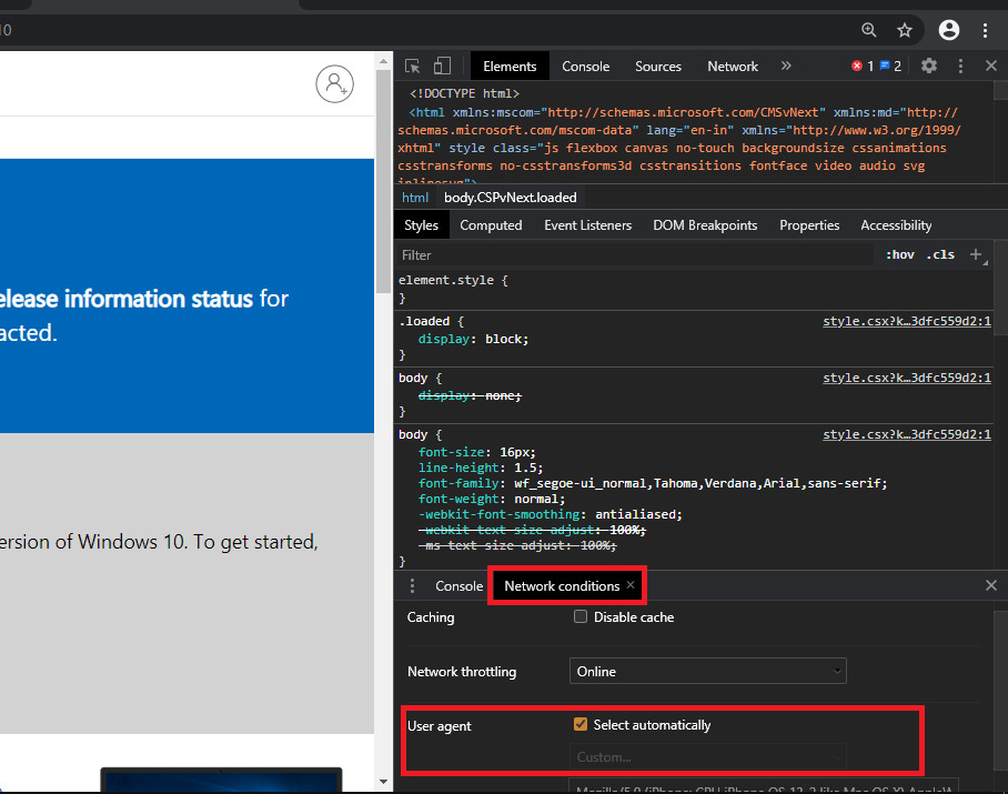 Step 6:- Uncheck “Select Automatically” under the “User Agent” section (check screenshot).