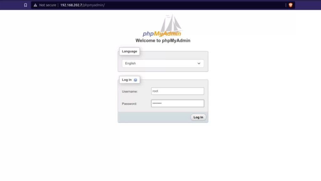 Enter the server IP address or domain name in the browser URL address to access phpMyAdmin web interface.